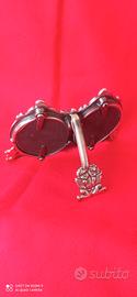 Portafoto doppio di piccole dimensioni 12×9 realizzato in peltro molto ben rifinito anche sul retro. Raffigurati piccoli cherubini