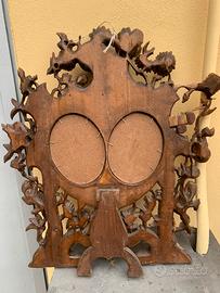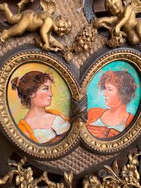 Portafoto intagliato in legno con 2 visi originali pittura a olio su tavola