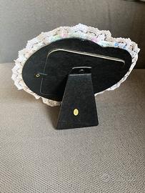 Portafoto cuore stoffa con fiocco; pieghevole fantasia fiori cornice con pizzo.