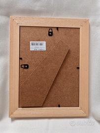 Dotata di piedino per appoggio su tavolo e 2 ganci per appenderla in verticale o orizzontale (vedi foto del retro).