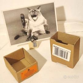 Portafoto design legno sbiancato, realizzato da Bortolani Becchelli Associati per Alessi, collezione Twergi, in legno di betulla con magnete per il fissaggio della foto, dimensioni circa: 5x6x3cm.