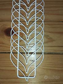 Portafoto in metallo bianco anticato, circa 51x10 cm. Adatta per 17 cartoline/foto. A forma di cuore.