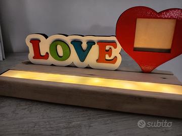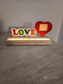 Portafoto Love artigianale realizzato con incisore laser al diodo, e colori acrilici, con luce funzionante a batteria modalità luce fissa o lampeggiante, ottimo come regalo.