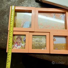 Portafoto multiplo di colore rosa in perfette condizioni, mai usato, nessun segno o graffio! Porta 5 foto di dimensioni una di 15 x 10 una di 10 x 10 e 3 di 7,5 x 7,5 dimensioni totali dell'oggetto 29 x 22 x 2,5