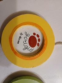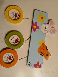 portafoto in legno da appendere con 3 portafoto rotondi.da bambini