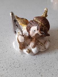 Angioletto portafoto pari al nuovo in gesso con molletta in metallo