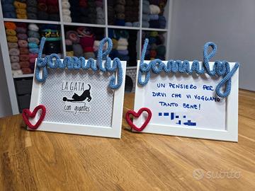 Realizzo queste cornici con pensieri di lana e cotone, si può scrivere un nome per una nascita, o una parola come amore, love, anniversario, anniversary, amicizia, felicità, sempre insieme, per celebrare un anniversario, una laurea, o qualsiasi evento o giorno vogliate ricordare ❤️