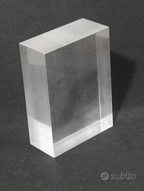 Oggetto raro e particolare, risale ai primi anni '70 ed è composto da un parallelepipedo in lucite (9 x 6,5 x 3 cm) e da un sostegno in alluminio massiccio satinato (10 x 5 cm), disegnato dalla nota azienda "Busse design Ulm" della Germania meridionale.