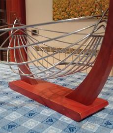 Portafrutta in legno e acciaio, con cesto basculante. Biesse design. Dimensioni cm 38x30x24h Ottime condizioni