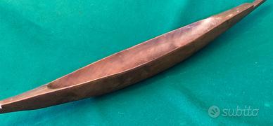 Portafrutta in legno intagliato a mano a forma di canoa Dimensioni: L=88cm, largh=15cm, H=10cm Peso: 2kg Perfette condizioni.