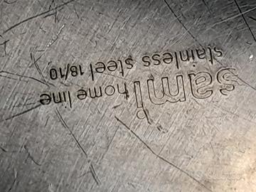 portafrutta in acciaio, altezza cm. 8,5, diametro sotto cm. 11, diametro sopra cm.28