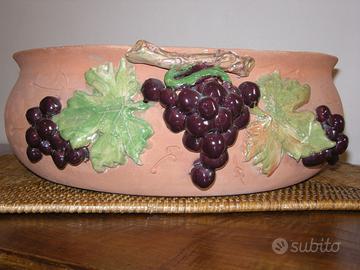 Vendo portafrutta in terracotta decorato realizzato da artigiano di Pietrasanta. Misura: Circonferenza 34,7 - Altezza 12,5 Oggetto pari al Nuovo.