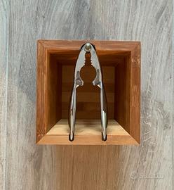 Portafrutta secca quadrato in legno con schiaccianoci in acciaio cromato da appoggiare nell'apposito inserto salvaspazio, BRANDANI. Buone condizioni. 17 x 17 x 9 cm circa. Consegna / ritiro concordabile.