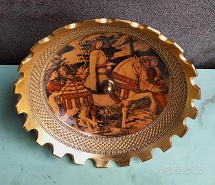 BELLISSIMO CENTROTAVOLA PORTAFRUTTA VINTAGE IN OTTONE MASSICCIO MOLTO PESANTE OLTRE 2KG DIPINTO A MOTIVI MEDIEVALI OGGETTO INTROVABILE SOLO RITIRO A MANO