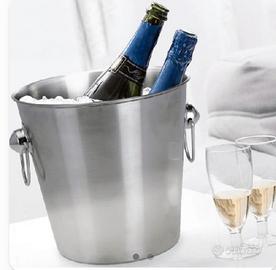 acciaio inox per feste porta bottiglia spumante secchiello per ghiaccio per tavolo tovaglia centrotavola si abbina a stoviglie piatti bicchieri soprammobile.