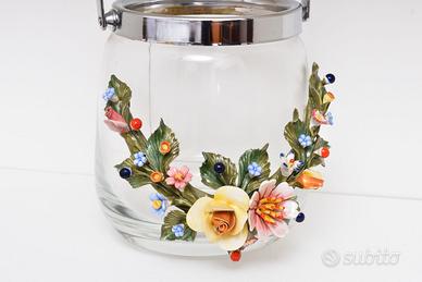 In vendita portaghiaccio in vetro con decorazione in ceramica bassanese. Solo scambio a mano.