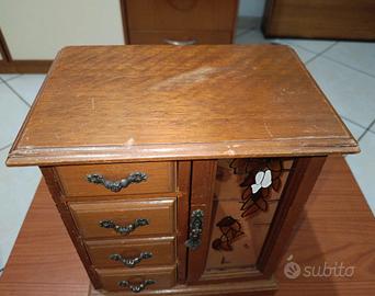 Oggetto di probabile interesse collezionistico, in discrete condizioni con qualche graffio superficiale e carillon funzionante all'apertura del cassettino . Prezzo trattabile!