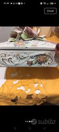 Lavorazione manifattura capodimonte petali di rosa napoletana con ricami in oro ha un piccolo difetto all'interno una venatura anni 60 vintage misura lunga cm18 larga cm 14