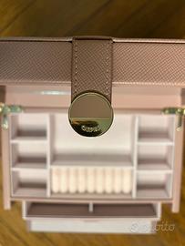 Vendo elegante scatola portagioie firmata Carpisa color rosa cipria con finitura esterna testurizzata. Il bauletto è estremamente capiente e ben organizzato, ideale per tenere in ordine anelli, orecchini, collane e bracciali.