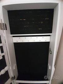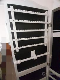 Ai numerosi ganci, scomparti e 2 cassettini si possono appendere/riporre collane, bracciali, orecchini, orologi, etc.