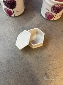 Vendi elegante portagioie esagonale realizzato interamente a mano. Un pezzo minimalista e moderno, perfetto per custodire anelli, piccoli gioielli o come elemento decorativo per la tua casa. ✨ Dettagli del prodotto: • Materiale: Gesso di alta qualità, rifinito a mano. • Design: Forma geometrica esagonale con coperchio coordinato. • Stile: Minimalista / Nordico / Boho chic. 🌈 Personalizzazione su richiesta: Oltre al pezzo in foto, offriamo la possibilità di ordini personalizzati: 1.Colori: Possiamo realizzarlo in qualsiasi tonalità tu preferisca per abbinarlo al tuo arredamento. 2.Materiali: Disponibile anche in resina epossidica (per un effetto lucido, trasparente o con glitter). 3.Quantità: Se hai bisogno di più pezzi (ad esempio come bomboniere per un evento speciale), contattami in privato per un preventivo personalizzato! Perfetto come idea regalo originale e fatta col cuore. 💖 Spedizione veloce e imballaggio accurato. Хештеги для охоплення: #portagioie #gesso #artigianato #fattoamano #homedecor #scatolina #designesagonale #resinaepossidica #bomboniere #regalopersonalizzato #vinteditalia