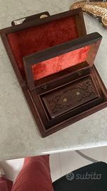 Set di tre portagioie etnici con interno in velluto rosso. Misure grande: 20x13x7; media: 17x9x6; piccola: 13x6x4