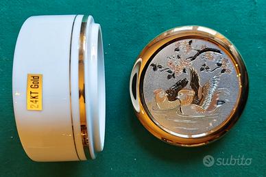 Lussuoso Portagioie Vintage in Porcellana, dorature Oro 24Kt, prodotto in Giappone con la tecnica del Chokin