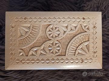 Materiale: faggio. Fatto a mano - intaglio. Rivestimento: vernice naturale incolore (2 strati).