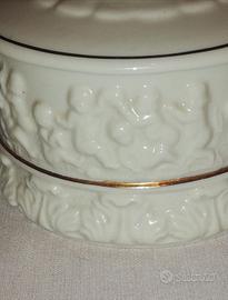 Portagioie scatola per ninnoli in porcellana bianca di Capodimonte con finiture in oro 24 carati.