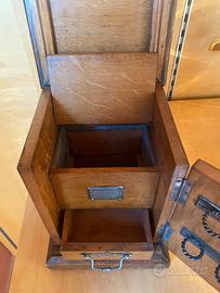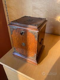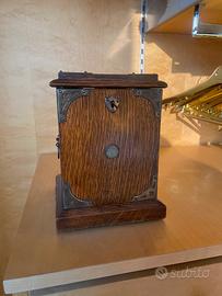 Vendo elegante portagioie in legn, realizzato artigianalmente con finiture curate e dettagli in metallo. Dotato di anta con ganci interni per collane e vano con cassettino, ideale per organizzare gioielli e piccoli oggetti. Design vintage, perfetto anche come idea regalo o complemento d’arredo. Caratteristiche: Struttura in legno Anta con ganci porta collane Cassettino interno Finiture in metallo decorative Condizioni: usato ma ben conservato, perfettamente funzionante.