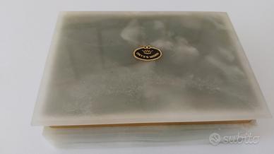 SPLENDIDO COFANETTO PORTAGIOIE / PORTACHIAVI IN ONICE VERDE GIADA DEGLI ANNI 70. QUESTO ONICE, USATO DA SEMPRE COME PIETRA ORNAMENTALE E’ UNA DELLE PIU’ RARE DELLE ONICE VERDE, E’ DI UN COLORE VERDE TENUE CON DELLE VENATURE/SFUMATURE DELICATE DI UN VERDE PIU’ CHIARO E PIU’ SCURO. IL COFANETTO MISURA Cm. 13,7 X 9,6 E 4 Cm. DI ALTEZZA ED E’ IN OTTIME CONDIZIONI, COME NUOVO. DA AGGIUNGERE LE SPESE DI SPEDIZIONE, SOLO BONIFICO BANCARIO.