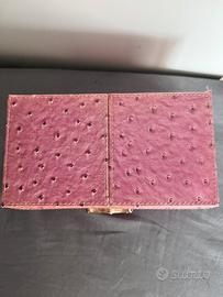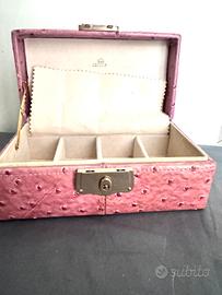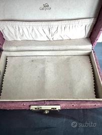 Portagioie in pelle rosa Carpisa, 19x 9 con chiusura a lucchetto, nonostanta qualche segno di ingiallimento del velluto interno come da foto, ottimo e ancora super utilizzabile e attuale