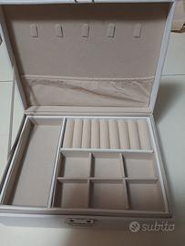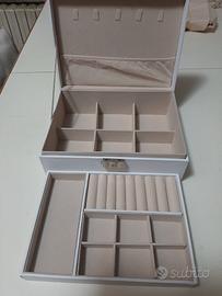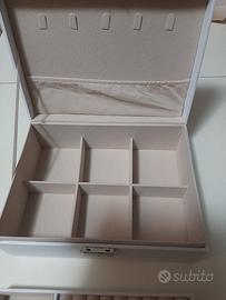 portagioie nuovo in ecopelle bianco elegante sta bene per arredare in ambienti moderni o antichi vintage con un scomparto nascosto doppio fondo misura larghezza 23 cm altezza 10 cm profondità 17 cm