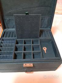 portagioie nuovo mai usato in pelle scamosciata e all interno velluto porta collane porta anelli vari scomparti cassetto e chiavi per chiudere elegante sta bene in ambienti moderni o vintage larghezza 25 cm altezza 13 cm profondità 19 cm