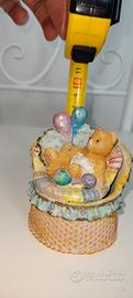 Delizioso portagioie vintage Lelly Kelly con orsetto decorativo. La parte superiore si apre rivelando uno scomparto ideale per piccoli oggetti o bijoux. Pezzo in ottime condizioni, perfetto come regalo o oggetto da collezione (vintage anni `90).