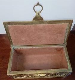 La scatola ha serratura tuttavia la chiave è andata smarrita. Interno in vellutino. Stato di conservazione esterno ottimo, il velluto interno presenta lievi segni del tempo.