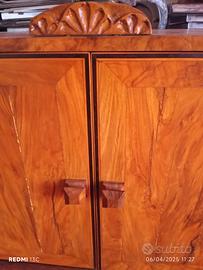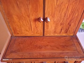 Delizioso mobiletto in ulivo anni '50, artigianale. Lavorazione accurata e rifinito a gommalacca. Può contenere 60 orologi da tasca o in alternativa pari numero di collane o bracciali. Dotato altresi', di tre capienti cassetti che possono alloggiare numerosi anelli od orologi da polso. Largo 50 cm, profondo 47, è alto 33 cm. Ottimo anche per una gioielleria è l'ideale per aumentare il prestigio del vostro arredamento, poichè oltre alla bellezza ed alla funzionalità è comunque un pezzo unico artigianale, in ulivo. Le foto non rendono il colore e le sfumature del legno. Se ne consiglia l'eventuale ritiro sul posto o in alternativa può essere spedito con un sovraprezzo di euro 20 dovuti per la costruzione di intelaiatura protettiva in polistirolo espanso e legno. Gli orologi presenti nella foto e relative catenelle in ferro vengono venduti a parte. Si accettano proposte per la vendita di tutto in blocco. Prego prima di inviare proposte di considerare quale prezzo chiedereste se il tutto foste voi a vendere. No permute, no perditempo. La condizione viene dichiarata in considerazione, anche dell'età del mobile.