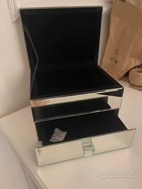 Vendo portagioie a specchio con 1 casetto + scomparto superiore. Mai utilizzato Misure 15x15x20