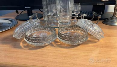 Coppia di portagioie vintage in vetro con dettaglio in metallo. Vintage, antichità, modernariato