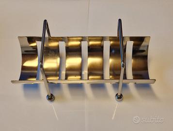 Portagrissini in acciaio inox, orizzontale, mis. cm21x8,5x h 9,5. Anni '70.