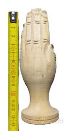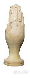 portaincenso in legno , scolpito a mano, raffigurante mani giunte in preghiera, provenienza Nepal