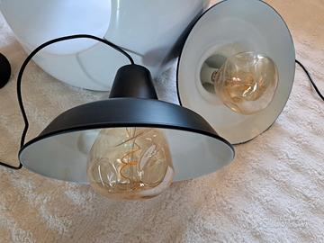Vendo n.2 portalampada di design stile vintage complete di lampade burattate con LED a filamento stile retrò. Diametro lampada 30cm. Lunghezza dal soffitto regolabile a piacere.