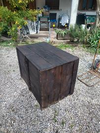 baule antico in legno da utilizzare come portalegna