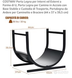 【Design a Forma di U e Ampio Spazio】Con la base realizzata a forma di U, lo scaffale ha tanto spazio per conservare facilmente la legna da ardere. Misura 39,5 cm in altezza e il design con la sbarra alta aiuta a impilare la legna senza che si ribalti. Inoltre, si può usare con le maniglie per trasportarlo facilmente.