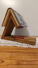 portalibro a triangolo in legno di frassino fatto a mano trattato con cera naturale