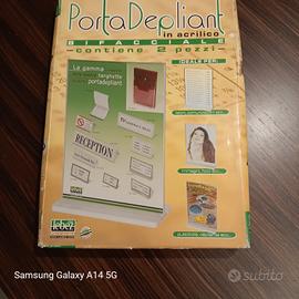 Vendo 6 portalistini da tavolo in plexiglass formato 21x30 cm ideale per listini, poster, avvisi in A4 inclinato a forma di L e due con la base dritta ancora nella confezione. inoltre tre pezzi che regalo in quanto hanno qualche segno ma utilizzabili tranquillamente. vendo in blocco a 10 euro