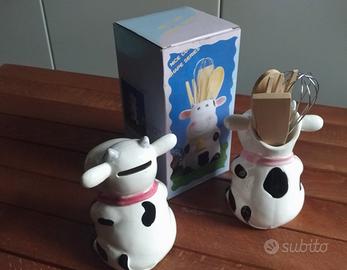 un portamestoli e un salvadanaio a forma di mucca.