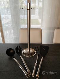 Per inutilizzo, vendo portamestoli girevole in acciaio e regalo i 4 mestoli in foto.
