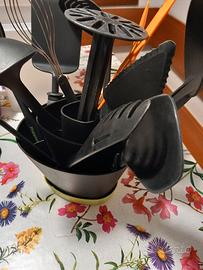 Portamestoli pratico e funzionale per organizzare il piano di lavoro in cucina. Si vende senza mestoli. Tenuto bene ma la plastica presenta lievi segni di usura, visibili solo avvicinandosi molto