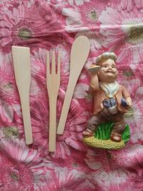 portamestoli di ceramica a forma di cuoco. Comprensivo di tre mestoli di legno. Nuovo, nella confezione originale. Euro 12. Possibile consegna a mano nelle stazioni ferroviarie di tutte le città del Veneto e nelle città limitrofe.